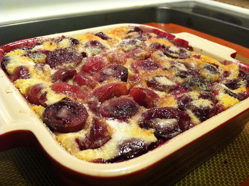 Préparez votre appareil à clafoutis. Battez vos oeufs en omelette. Ajoutez-y le sucre, le sirop de vanille (ou le sucre vanillé), la farine, mélangez bien, puis le beurre fondu et légèrement refroidi. et enfin le lait.